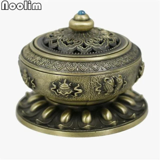 Crafted from high-quality alloy, our Nepal Style Incense Burner is durable, heat-resistant, and designed to provide a safe and efficient way to enjoy your incense coils. The intricate design and attention to detail make it a statement piece that complements a variety of decor styles, from bohemian and eclectic to minimalist and modern. Let the gentle smoke spiral upward, creating a calming and mesmerizing atmosphere.